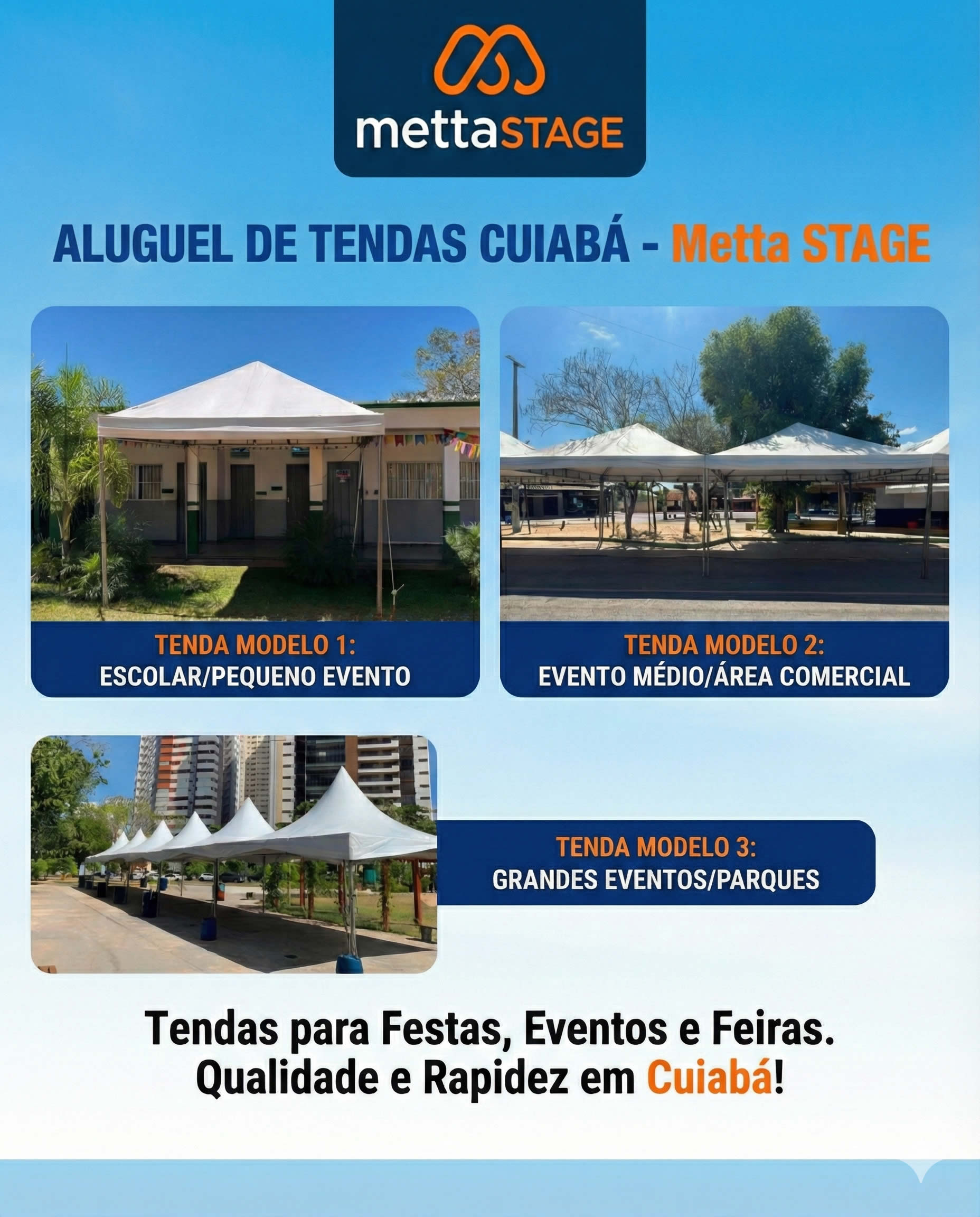 Somos especialistas em aluguel de tendas, estruturas de palco e tablados para eventos de todos os portes. Atuamos em Cuiabá e região, oferecendo um serviço rápido, seguro e pontual.